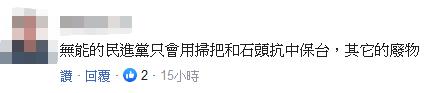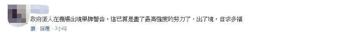 同時(shí),有網(wǎng)友對(duì)民進(jìn)黨當(dāng)局的無能展開花式嘲諷:“(民進(jìn)黨)政府派人在機(jī)場(chǎng)出境舉牌警告,這已算是盡了最高強(qiáng)度的努力了,出了境,自求多福。”“無能的民進(jìn)黨只會(huì)用掃把和石頭‘抗中保臺(tái)’,其它的廢物。”
