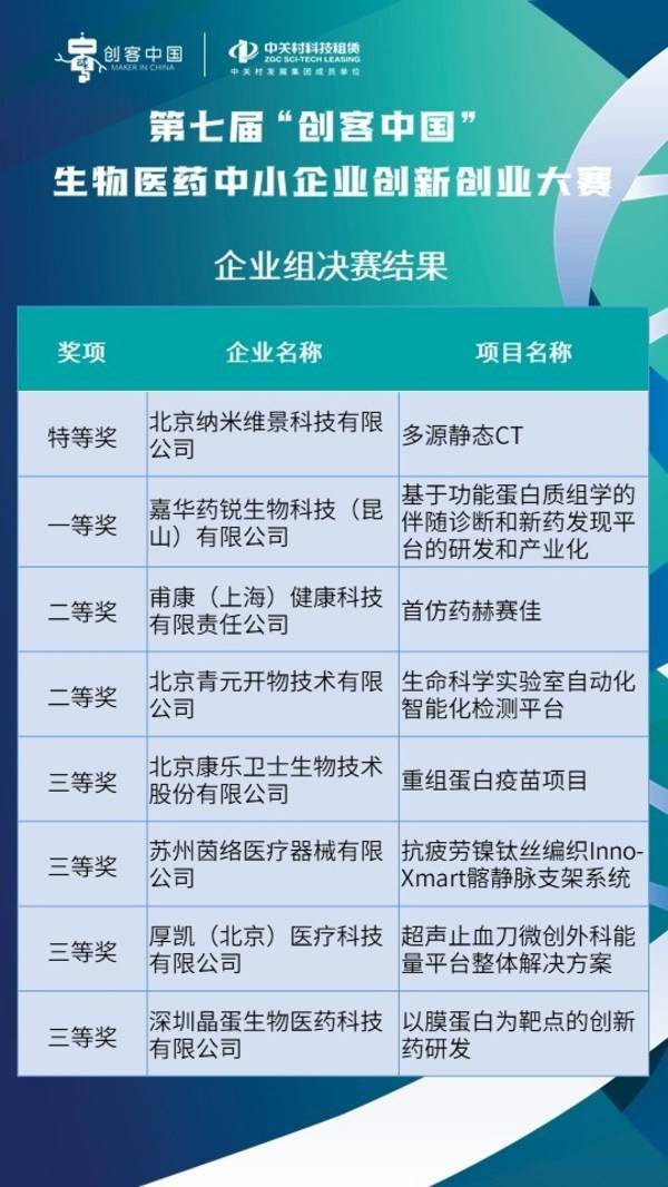 第七屆"創(chuàng)客中國"生物醫(yī)藥中小企業(yè)創(chuàng)新創(chuàng)業(yè)大賽獲獎名單如下: