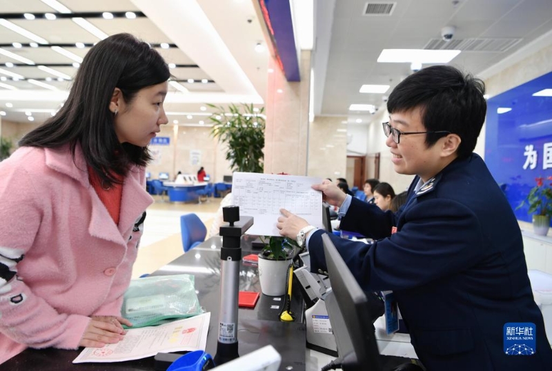 2020年1月21日,工作人員在國家稅務(wù)總局福州市鼓樓區(qū)稅務(wù)局辦稅服務(wù)大廳為企業(yè)財務(wù)人員介紹減稅申報表的填寫方法。新華社記者 魏培全 攝