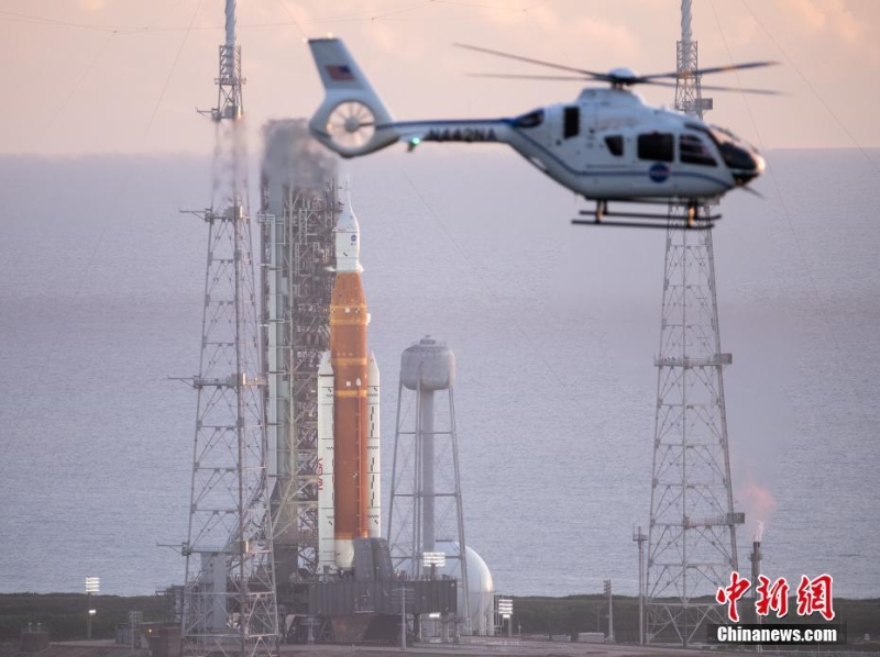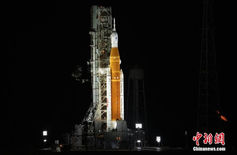 當(dāng)?shù)貢r間8月29日,美國國家航空航天局(NASA)巨型探月火箭“太空發(fā)射系統(tǒng)”被固定在佛羅里達州肯尼迪航天中心的發(fā)射架上。當(dāng)日,“太空發(fā)射系統(tǒng)”因故障推遲發(fā)射。 中新社發(fā) NASA 供圖