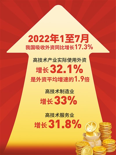 今年1-7月,高技術(shù)產(chǎn)業(yè)實(shí)際使用外資增長32.1%——