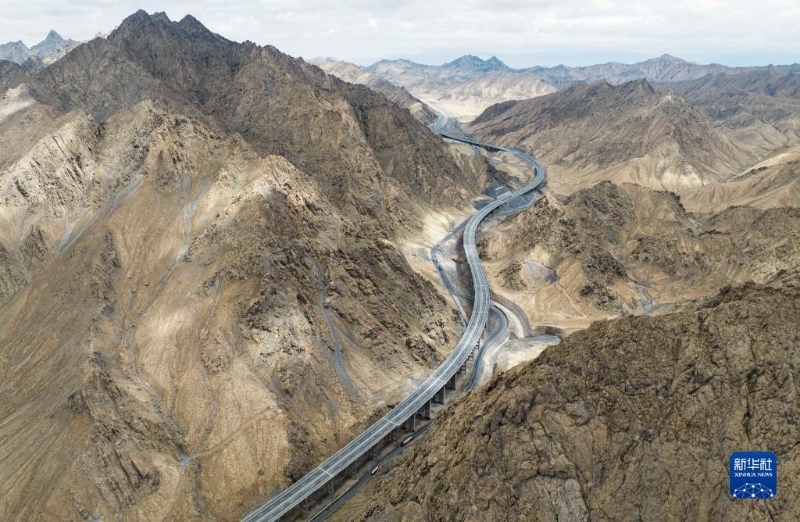 依若高速公路蜿蜒穿越新疆若羌縣山區(qū)(8月6日攝,無人機照片)。新華社發(fā)(中國交建供圖)