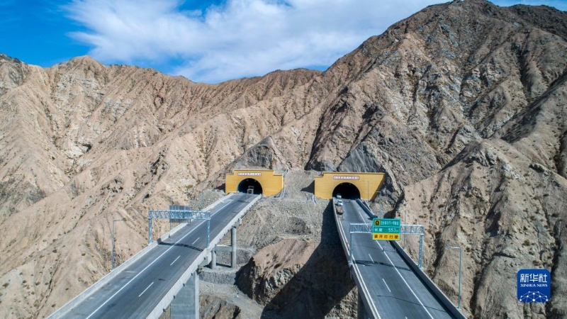 依若高速公路巴什庫爾干一號隧道(6月11日攝,無人機照片)。新華社發(fā)(中國交建供圖)