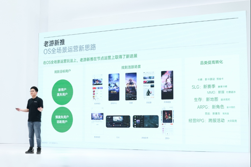 如何維持老游活躍度是行業(yè)的普遍難題,OPPO游戲在今年加強(qiáng)了對(duì)老游的重視度,推出「老游新推OS全場(chǎng)景運(yùn)營(yíng)」解決方案,并在老游節(jié)點(diǎn)創(chuàng)新運(yùn)營(yíng)打法上取得了新的突破。由開(kāi)發(fā)者填報(bào)游戲節(jié)點(diǎn)和基本信息,OPPO游戲根據(jù)各個(gè)游戲品類特征,結(jié)合目標(biāo)用戶活躍場(chǎng)景及游戲節(jié)點(diǎn)特征,將游戲節(jié)點(diǎn)活動(dòng)和福利信息推送到瀏覽器、負(fù)一屏等OS核心場(chǎng)景和智能短信、日歷等創(chuàng)新場(chǎng)景,成功助力《誅仙》、《三國(guó)志·戰(zhàn)略版》、《陰陽(yáng)師》等老游的節(jié)點(diǎn)新增量與回流率提升。未來(lái),OPPO游戲還會(huì)在老游品類的寬度與運(yùn)營(yíng)策略的深度上進(jìn)行延伸。