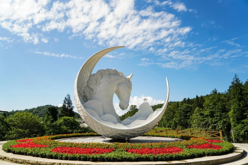 白馬山天尺情緣景區(qū)是以白馬山和仙女山的愛情文化為主題的生態(tài)旅游區(qū),是一處集休閑、娛樂、親子、觀光、度假于一體的生態(tài)旅游景區(qū),主要景點有貢茶園、飛天之吻、白馬仙街、浪漫天街、望仙崖等。