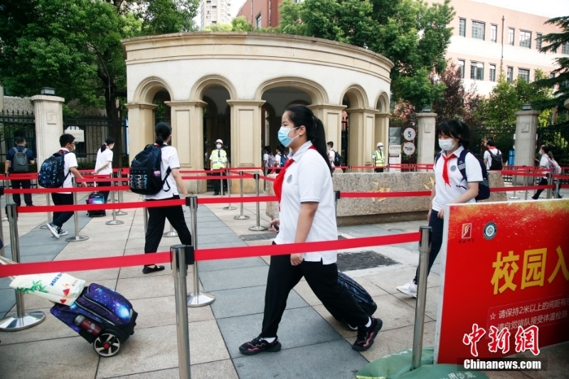 9月1日,上海,市西中學(xué)的學(xué)生有序進(jìn)入學(xué)校。當(dāng)日,上海中小學(xué)、托幼機構(gòu)正式開學(xué)。 中新社記者 湯彥俊 攝