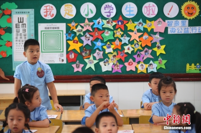 9月1日,江蘇南京,夫子廟小學(xué)的學(xué)生們在課堂內(nèi)上課。當(dāng)日,南京市中小學(xué)正式開學(xué)。 中新社記者 泱波 攝