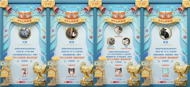 雖然聲替只有一位,但獎(jiǎng)品卻是可以多范圍發(fā)放的。除了聲替,活動(dòng)還準(zhǔn)備了人氣獎(jiǎng)、天選之貓獎(jiǎng),還有“評(píng)什么特別獎(jiǎng)”,言外之意,貓?zhí)焯煜M梢宰畲蟪潭日{(diào)度用戶(hù)參與的積極度。