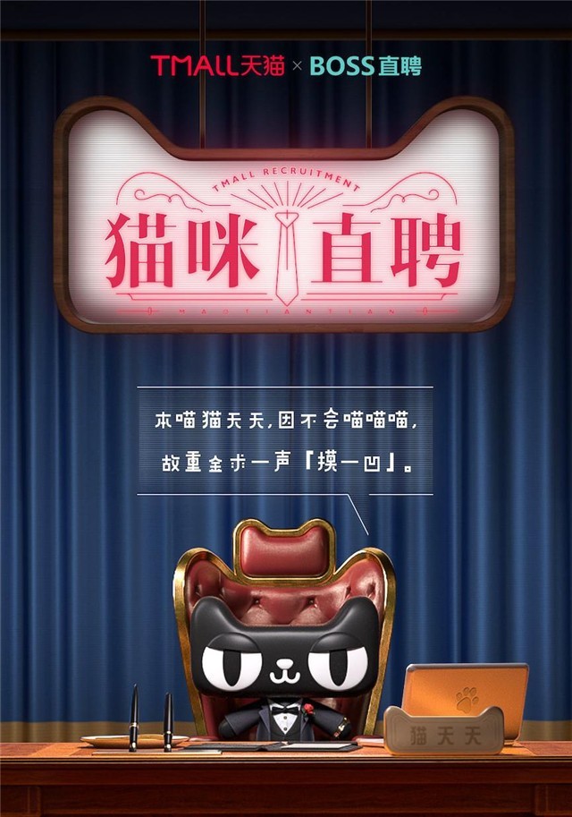 為了讓本次招聘活動(dòng)看上去更加“有模有樣”,天貓還聯(lián)合了專(zhuān)做招聘業(yè)務(wù)的BOSS直聘,開(kāi)啟貓咪直聘話(huà)題事件。