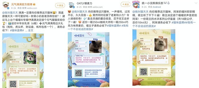 最終,根據(jù)統(tǒng)計(jì),活動(dòng)共吸引了上千只貓咪報(bào)名。活動(dòng)話(huà)題#小貓咪的叫聲有多豐富#則登上熱搜,實(shí)現(xiàn)3.7億曝光。