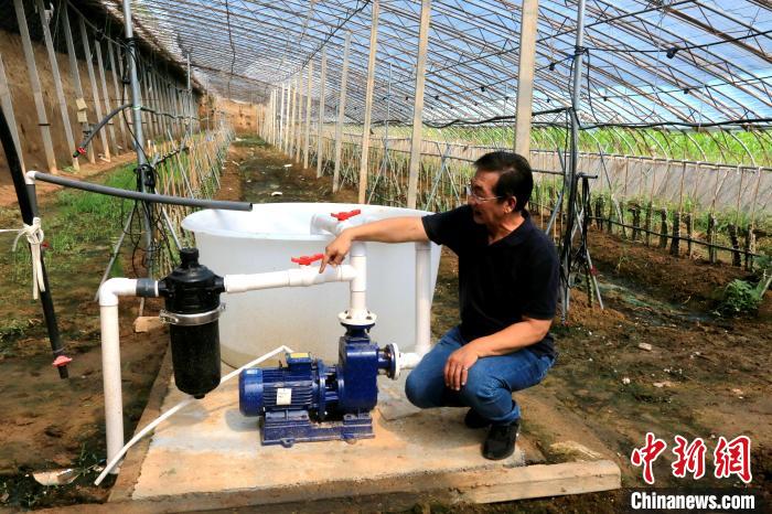 臺(tái)商姜洪興在燕窩果大棚巡查設(shè)備?!⊥跣戮?攝