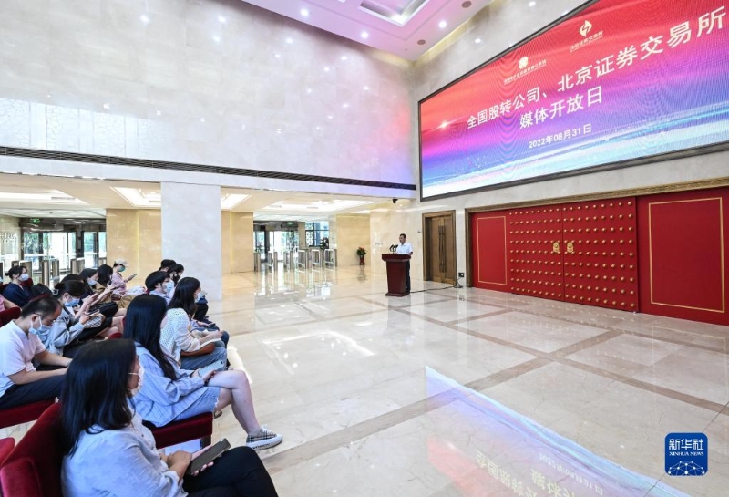 媒體在北京證券交易所采訪(8月31日攝)。新華社記者 陳曄華 攝