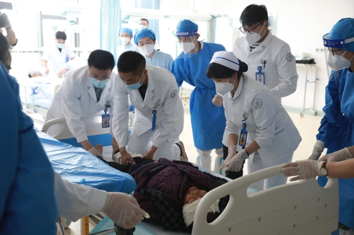 9月6日,西部戰(zhàn)區(qū)總醫(yī)院收治從瀘定縣轉(zhuǎn)運(yùn)來(lái)的傷員。新華社發(fā)(韋世銘 攝)