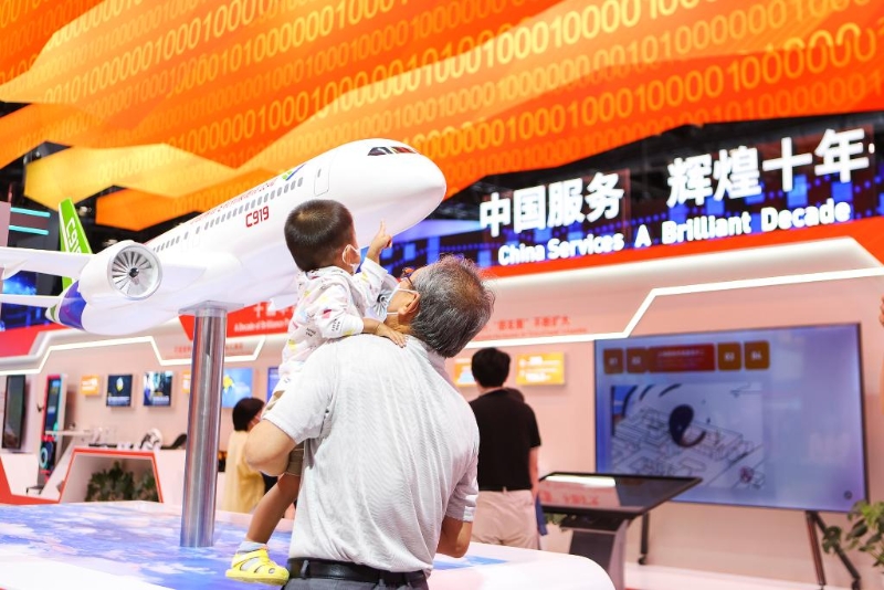 9月5日,觀眾在服貿(mào)會(huì)國(guó)家會(huì)議中心參觀中國(guó)服務(wù)貿(mào)易成就展。新華社記者郝昭攝