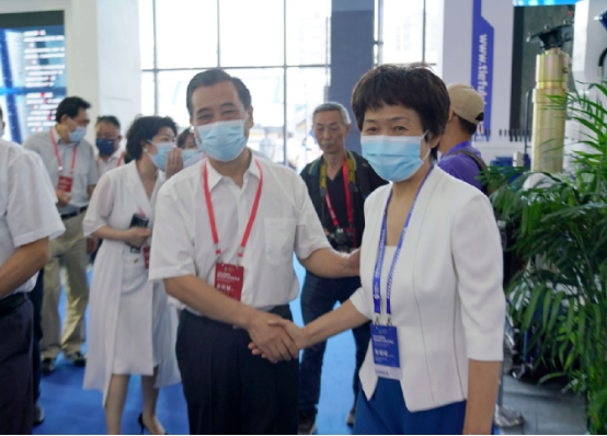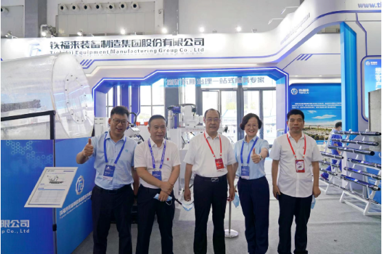 ▲晉能控股裝備制造集團(tuán)董事長(zhǎng)王鎖奎(左3)一行領(lǐng)導(dǎo)蒞臨鐵福來(lái)展位