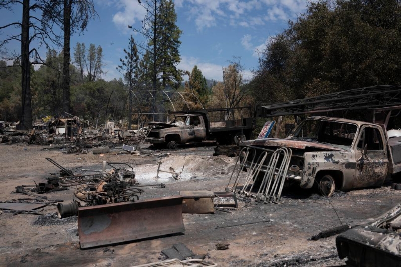 這是7月25日在美國加利福尼亞州馬里波薩縣拍攝的被燒毀車輛。新華社發(fā)(李建國 攝)