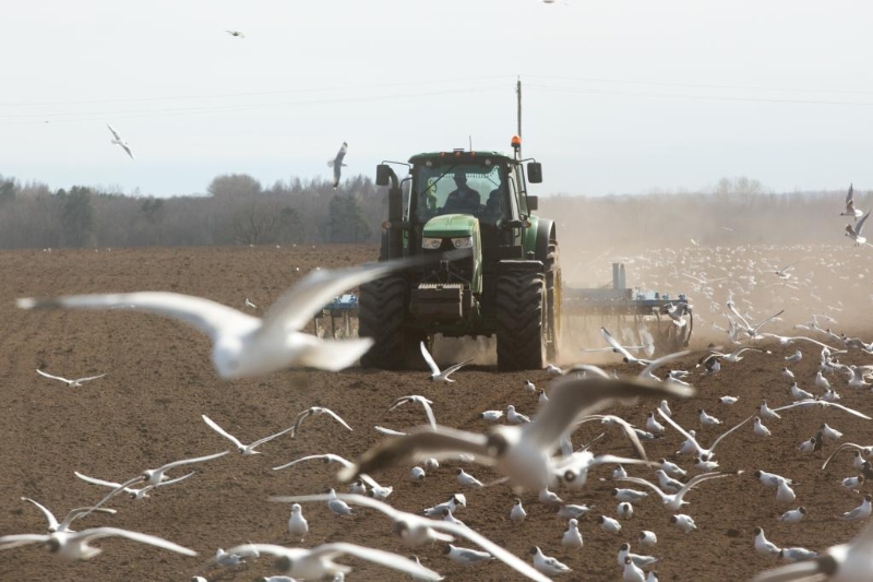 2021年4月15日,農(nóng)民在俄羅斯列寧格勒州一農(nóng)場內(nèi)播種春小麥。新華社發(fā)(莫京娜 攝)