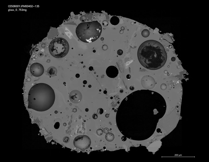 這是4月10日拍攝的嫦娥五號月壤中的一顆玻璃珠的橫截面背散射電子圖像。(中科院地質(zhì)與地球物理研究所供圖)