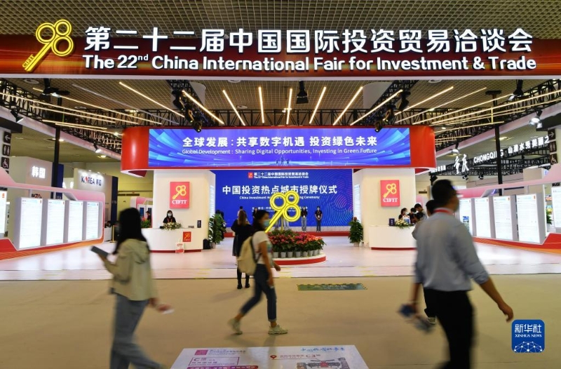 2022年9月8日拍攝的第二十二屆投洽會(huì)展館現(xiàn)場(chǎng)。當(dāng)日,以“全球發(fā)展:共享數(shù)字機(jī)遇、投資綠色未來(lái)”為主題的第二十二屆中國(guó)國(guó)際投資貿(mào)易洽談會(huì)(簡(jiǎn)稱(chēng)“投洽會(huì)”)在福建廈門(mén)開(kāi)幕。新華社記者 魏培全 攝