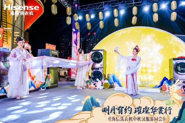 9月9日晚,在由海信洗衣機(jī)推出的“明月有約 璀璨華裳行”中秋漢服秀游園會(huì)上,“霓裳嫦娥”身披4米披帛霓裳曼舞、拜月點(diǎn)燈,讓這場(chǎng)精彩絕倫的漢服大秀燃爆全場(chǎng)。同時(shí),海信洗衣機(jī)基于先進(jìn)洗護(hù)科技,針對(duì)漢服等嬌奢衣物難護(hù)理的痛點(diǎn),提供精細(xì)化智能解決方案,也讓現(xiàn)場(chǎng)觀眾贊嘆不已。
