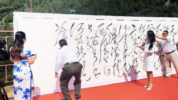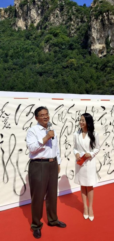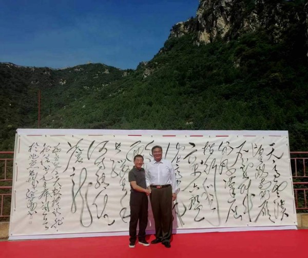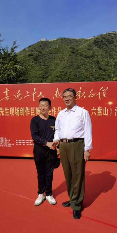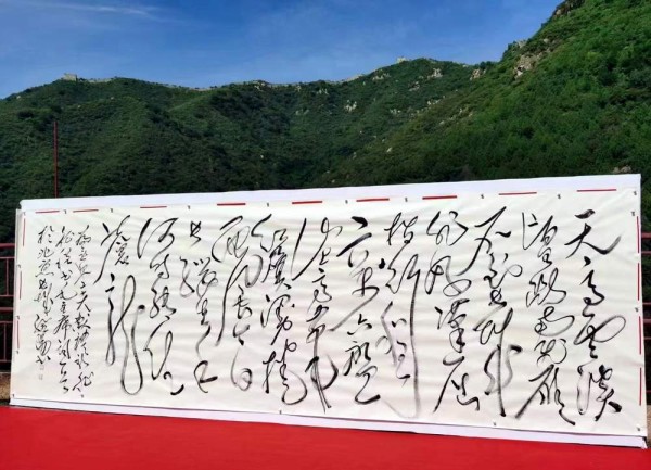 本次活動的宗旨是‘喜迎二十大,獻禮新征程’,在二十大召開之際,孔維陽先生選擇在北京懷柔的響水湖長城之上,現(xiàn)場創(chuàng)作巨幅書法作品——《清平樂?六盤山》,具有重大的歷史意義,從某種意義上講是傳承民族文化,揚我中華國威。