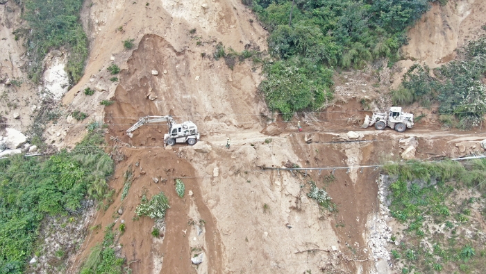 9月8日,西部戰(zhàn)區(qū)陸軍第77集團(tuán)軍某工兵旅官兵在雅安市石棉縣進(jìn)行道路搶通作業(yè)。(無人機(jī)照片)。新華社發(fā)(李雪嬌 攝)