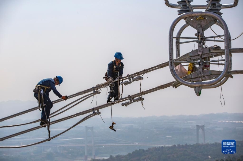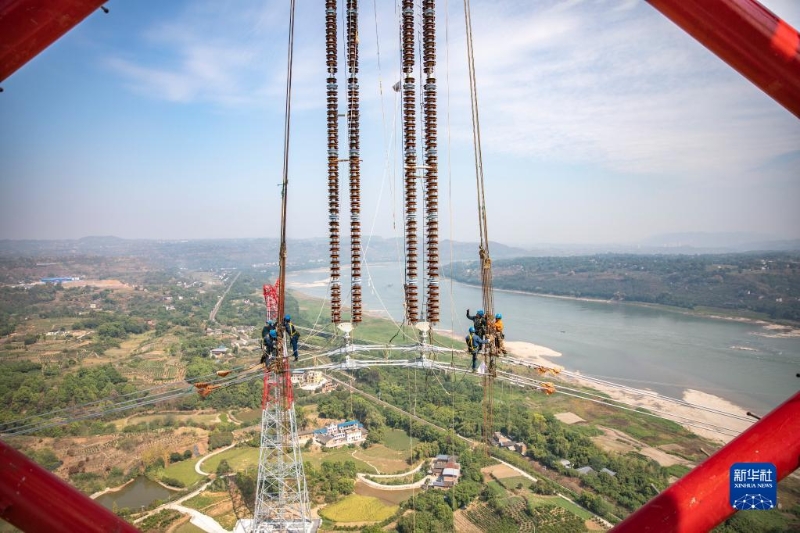 當(dāng)日,歷經(jīng)13天連續(xù)施工,“西電東送”大動(dòng)脈白鶴灘-浙江±800千伏特高壓直流輸電工程(白浙線)重慶段順利完成長江大跨越放線作業(yè)。