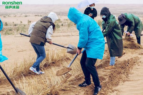 此次容聲冰箱組織的“綠色守護(hù)天團(tuán)”隊(duì)伍中,就涵蓋了用戶和志愿者,與企業(yè)一起共赴阿拉善,作為“節(jié)能森林”計劃的落地舉措之一。除了一起對阿拉善進(jìn)行實(shí)地探訪,“綠色守護(hù)天團(tuán)”還為容聲冰箱種植的梭梭樹掛牌,并做了各種防護(hù)準(zhǔn)備,讓沙漠中的綠色茁壯生長,成為低碳路上的靚麗色彩。