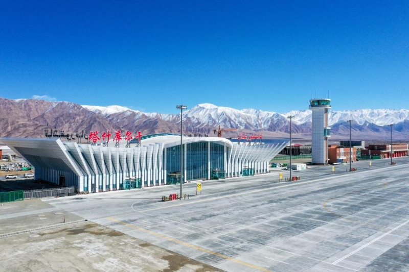 這是2月27日拍攝的新疆首個高高原機(jī)場——新疆塔什庫爾干紅其拉甫機(jī)場(無人機(jī)照片)。新華社記者 丁磊 攝