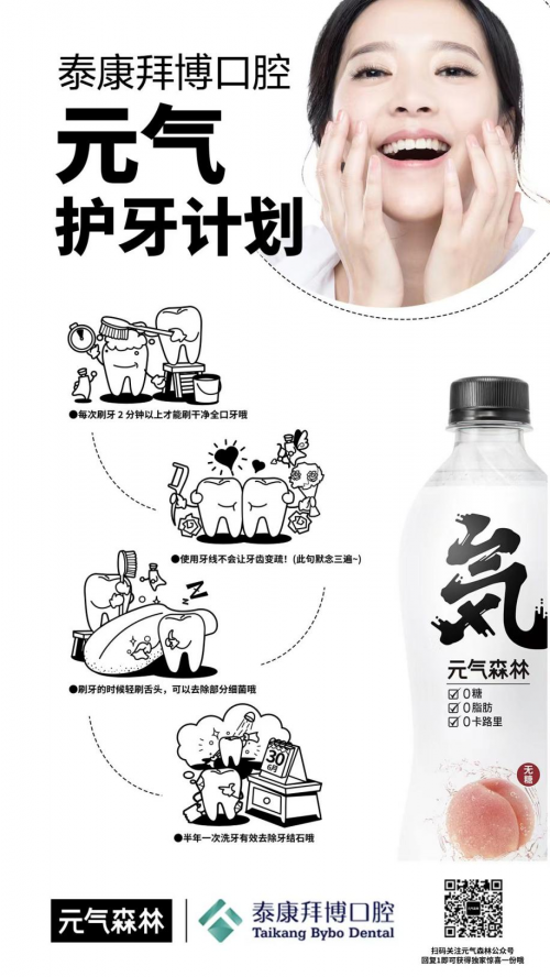 泰康拜博口腔與元?dú)馍址e極響應(yīng)全國愛牙日主題的號召,在全國愛牙日期間,持續(xù)助力少年兒童及成人的口腔健康以及護(hù)牙知識科普,并于9月13日通過官方社交平臺向粉絲發(fā)起有關(guān)護(hù)牙、愛牙、口腔健康等相關(guān)問題征集,由泰康拜博口腔專業(yè)齒科醫(yī)生為粉絲答疑解惑。除此之外,“元?dú)庾o(hù)牙計劃”還將走進(jìn)企業(yè)內(nèi)部,在元?dú)馍直本┕^(qū)開展為期2天的全員口腔義診活動,通過開展現(xiàn)場口腔健康宣教,幫助大家提高口腔健康意識的同時,為受牙病困擾的員工提供專業(yè)指導(dǎo)方案。在此期間,元?dú)馍忠矠楸本┨┛蛋莶┛谇婚T店就診患者提供驚喜周邊,共同推動大眾的口腔健康意識和提升護(hù)牙理念。