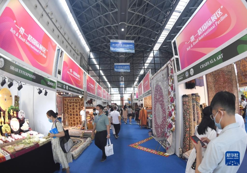 9月17日,參觀者在東博會(huì)“一帶一路”國際展區(qū)參觀。新華社記者 周華 攝