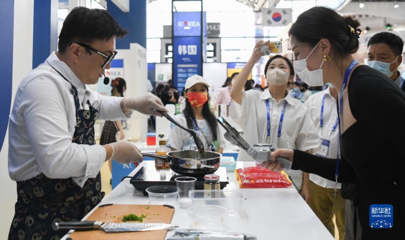 9月16日,廚師在東博會(huì)韓國館展示廚藝。新華社記者 張愛林 攝
