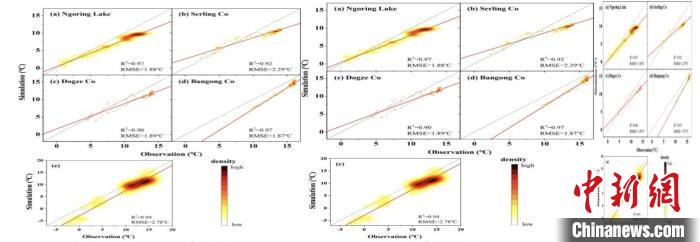 其中,研究團(tuán)隊(duì)重建了廣覆蓋、長時(shí)序的湖面溫度數(shù)據(jù)產(chǎn)品。針對青藏高原的湖泊水熱平衡的基本特征及數(shù)據(jù)基礎(chǔ),團(tuán)隊(duì)對湖泊一維能量平衡模型加以改進(jìn),并借助“谷歌地球引擎”(GEE)平臺,基于相關(guān)數(shù)據(jù)獲取全湖平均溫度的時(shí)間序列對模型進(jìn)行率定和驗(yàn)證,首次重建了青藏高原160個(gè)湖泊的1978-2017年逐日湖面溫度數(shù)據(jù)集。該數(shù)據(jù)產(chǎn)品覆蓋范圍廣、時(shí)間跨度較長、時(shí)間分辨率高,可為認(rèn)識青藏高原湖泊能量平衡對氣候變化的響應(yīng)提供重要的技術(shù)和數(shù)據(jù)支撐。進(jìn)一步檢驗(yàn)表明,該數(shù)據(jù)產(chǎn)品與地面實(shí)測湖面溫度有很好的一致性。