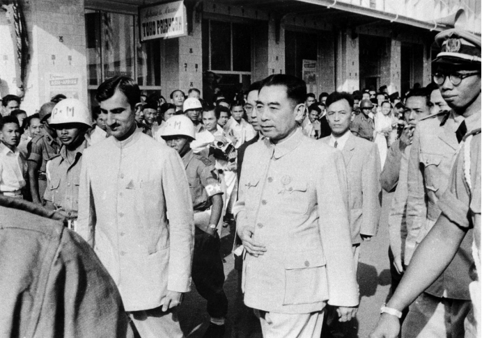 1955年4月,亞非會議上,周恩來發(fā)表了《關(guān)于促進(jìn)世界和平與合作的宣言》,其中包括“和平共處五項原則”的全部內(nèi)容。