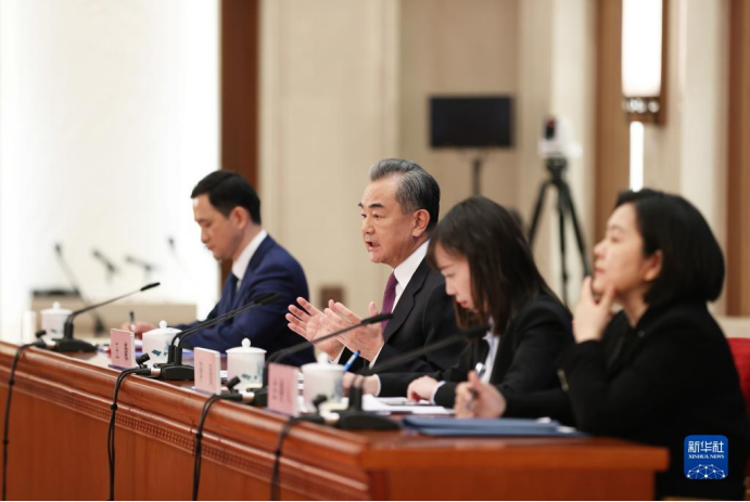 2022年3月7日,十三屆全國人大五次會議在北京人民大會堂舉行視頻記者會,國務(wù)委員兼外交部長王毅就中國外交政策和對外關(guān)系回答中外記者提問。新華社記者 金立旺 攝