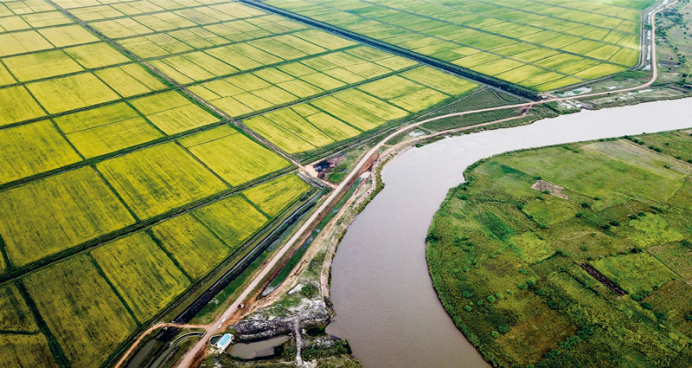 消除貧困是人類面臨的共同挑戰(zhàn)。中國通過“一帶一路”倡議幫助沿線各國增加就業(yè)、改善民生,以實際行動為推進(jìn)全球減貧事業(yè)作出貢獻(xiàn)。圖為2019年4月7日無人機(jī)拍攝的莫桑比克中非農(nóng)業(yè)合作項目——萬寶莫桑農(nóng)業(yè)園的水稻田,該項目極大地緩解了莫桑比克糧食短缺問題。 新華社記者 張宇 攝