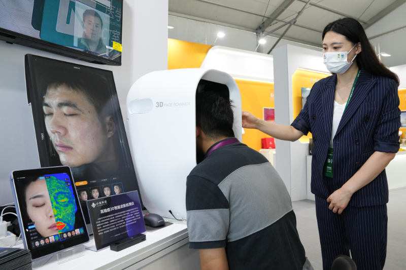 在2022年全國“雙創(chuàng)周”合肥主題展區(qū),一位工作人員在展示新產(chǎn)品。新華社記者 杜宇 攝