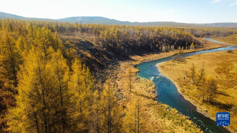 這是9月21日拍攝的阿爾山國家森林公園中不凍河的自然風(fēng)光(無人機(jī)照片)。