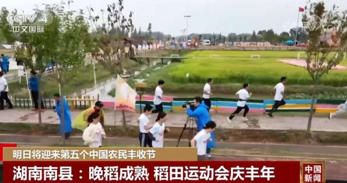 在湖南益陽(yáng)南縣,近年來(lái)這里主要發(fā)展稻蝦種養(yǎng)產(chǎn)業(yè),面積達(dá)到了60多萬(wàn)畝。眼下,大片晚稻成熟,在金黃的稻田里,當(dāng)?shù)厝罕娕e行稻田趣味運(yùn)動(dòng)會(huì)、美麗鄉(xiāng)村健康跑等豐富多彩的活動(dòng),分享豐收喜悅。