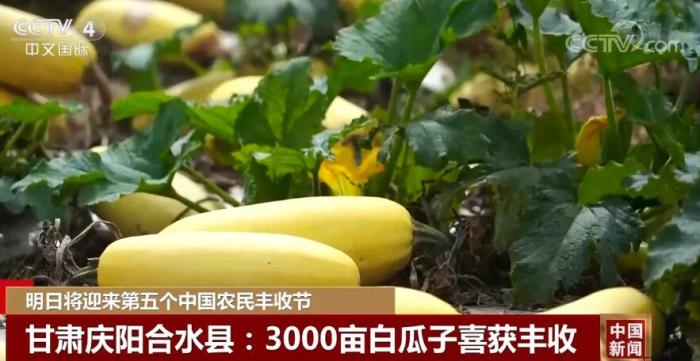 在甘肅慶陽(yáng)合水縣,3000畝白瓜子到了收獲的季節(jié)。白瓜子是西葫蘆的瓜籽,從高空俯瞰,一顆顆金燦燦的西葫蘆擺滿了田地, 就像一張金黃色的地毯鋪設(shè)在美麗的田野上。