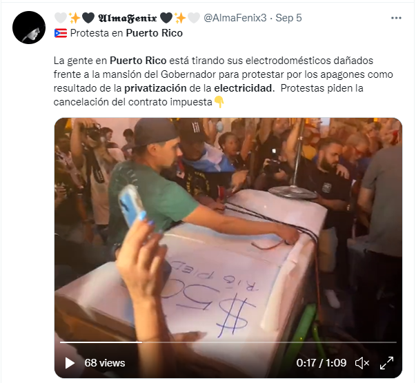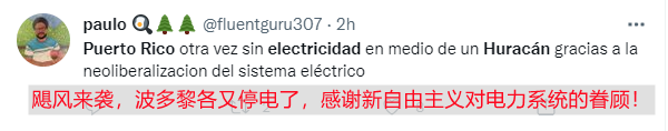 憤怒過(guò)后,網(wǎng)友們將矛頭指向了波多黎各的電力運(yùn)營(yíng)私有化問(wèn)題。