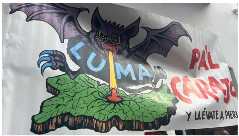 2022年8月,一名網(wǎng)友將魯瑪能源公司畫(huà)作一只吸血蝙蝠,在波多黎各的上方用吸管吸食波多黎各民眾的血汗。(網(wǎng)頁(yè)截圖)