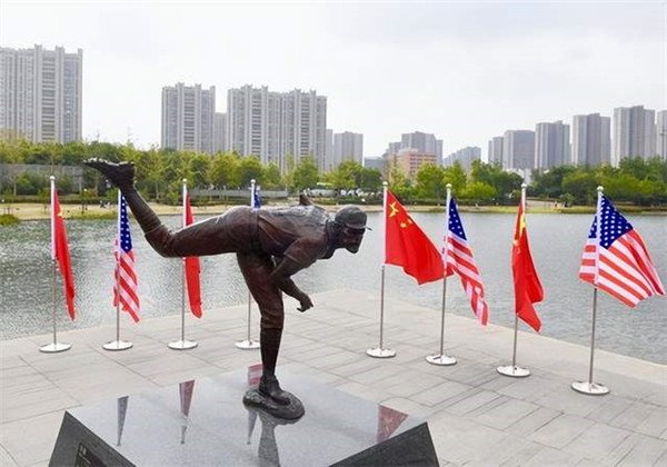 (圖為中國(guó)南京投球手雕像。圖片來(lái)源:駐美國(guó)使館)