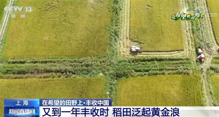 這里是上海市奉賢區(qū),今年種植的17萬(wàn)畝水稻已經(jīng)陸續(xù)進(jìn)入成熟收割期,當(dāng)?shù)卣龘屪デ绾锰鞖忾_(kāi)鐮收割。稻田里,機(jī)器轟鳴,農(nóng)機(jī)手們駕駛著收割機(jī)在金色的稻田中來(lái)回穿梭,收割、脫粒、裝車(chē)、稻稈粉碎,一派繁忙景象,隆起的谷堆展現(xiàn)著今年的好收成。