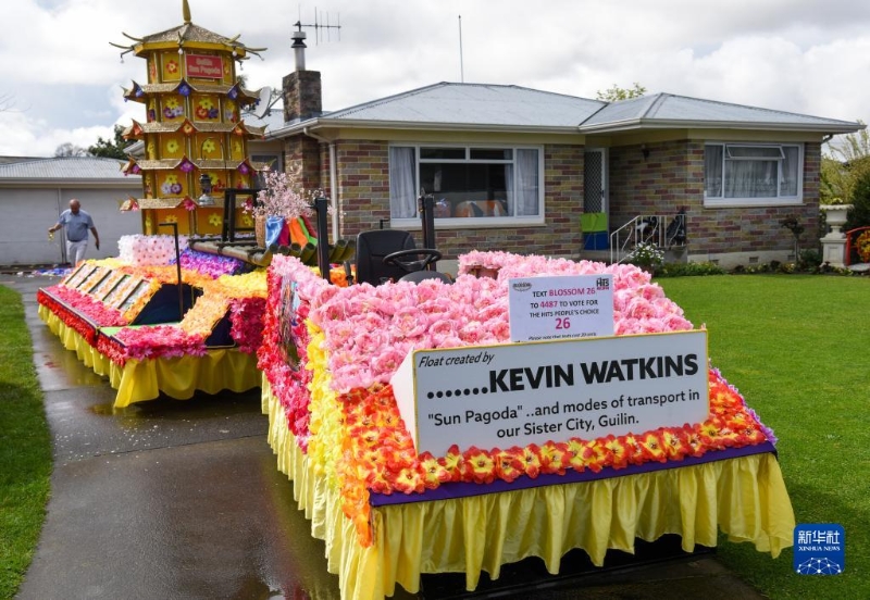 9月24日,在新西蘭黑斯廷斯,凱文·沃特金斯為自己的中國主題花車做巡游前的最后準(zhǔn)備。