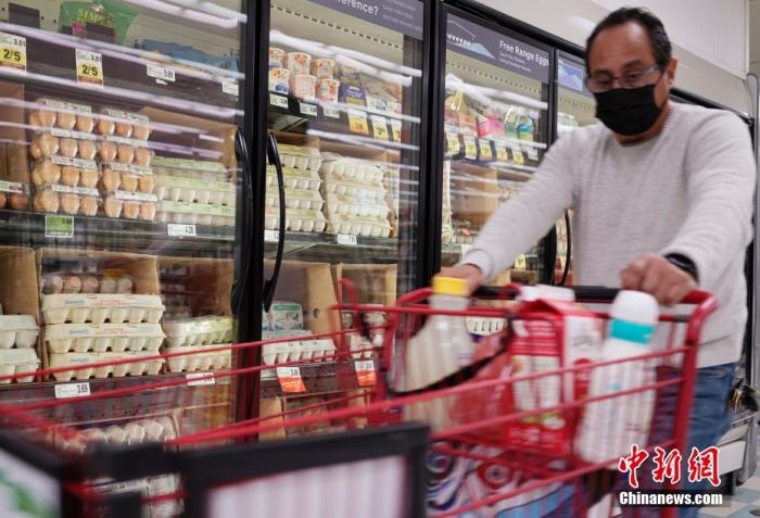 當(dāng)?shù)貢r(shí)間4月5日,一名顧客從美國(guó)加州圣馬特奧縣一家超市的雞蛋貨柜前經(jīng)過(guò)。 中新社記者 劉關(guān)關(guān) 攝