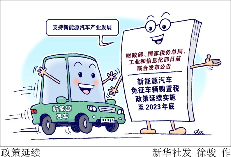 新華社北京9月26日電(記者申鋮)記者26日從財(cái)政部了解到,為支持新能源汽車產(chǎn)業(yè)發(fā)展,財(cái)政部、國家稅務(wù)總局、工業(yè)和信息化部日前聯(lián)合發(fā)布公告,明確將今年底到期的新能源汽車免征車輛購置稅政策,延續(xù)實(shí)施至明年底。