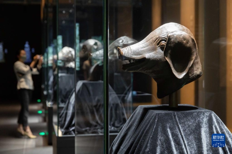 當日,“盛世回歸——海外回流文物特展”在上海市閔行區(qū)博物館開幕,展覽包括“盛世重逢”和“華美賡續(xù)”兩個部分,匯聚了來自保利藝術(shù)博物館和北京市海淀區(qū)圓明園管理處的47件精美文物,均為海外回流精品文物。展品包括清代圓明園海晏堂十二生肖之牛首、虎首、猴首、豬首青銅獸首原件、馬首復(fù)制件,以及商周、春秋戰(zhàn)國、兩漢時期國寶級青銅重器。