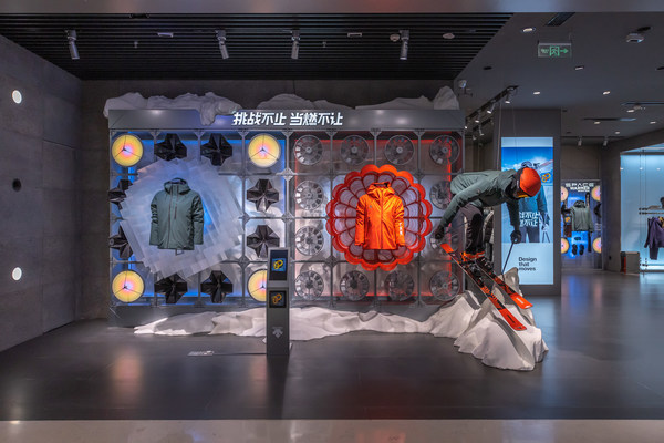 9月22日,迪桑特在科技發(fā)布會(huì)上發(fā)布了“專業(yè)運(yùn)動(dòng)鎖溫科技系統(tǒng)”,發(fā)布會(huì)后,消費(fèi)者可以第一時(shí)間在中信泰富DKL全球體驗(yàn)中心解鎖鎖溫科技賦能的冬季運(yùn)動(dòng)全新體驗(yàn),感受冰雪運(yùn)動(dòng)魅力。一層入口處的科技空間,以動(dòng)態(tài)裝置將專業(yè)運(yùn)動(dòng)鎖溫科技藝術(shù)化呈現(xiàn),靜態(tài)服裝和動(dòng)態(tài)裝置的反差,構(gòu)成了科技對(duì)服裝的賦能連接。