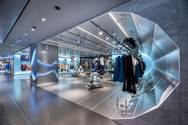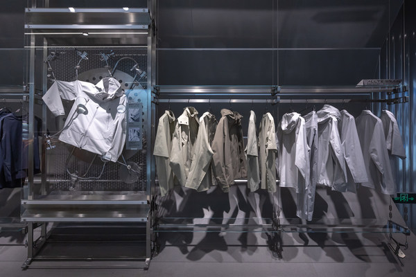 中信泰富DKL全球體驗(yàn)中心同樣擁有雙層的標(biāo)志性零售空間D空間。一層的D空間中陳列著ALLTERRAIN高端機(jī)能全地形系列。整體空間設(shè)計(jì)冷靜克制,令消費(fèi)者近距離感受ALLTERRAIN系列"形式追隨功能"的極致設(shè)計(jì)理念。